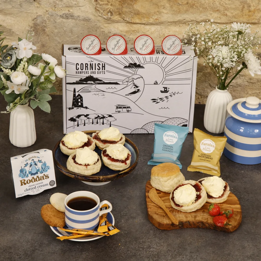 Experience the essence of Cornwall with our Cream Tea Hampers, available for delivery throughout the UK. We meticulously curate our hampers with premium products sourced directly from Cornwall, guaranteeing exceptional quality and authenticity. Ideal for any occasion, our Cornish cream tea hampers offer a delightful treat at any time.