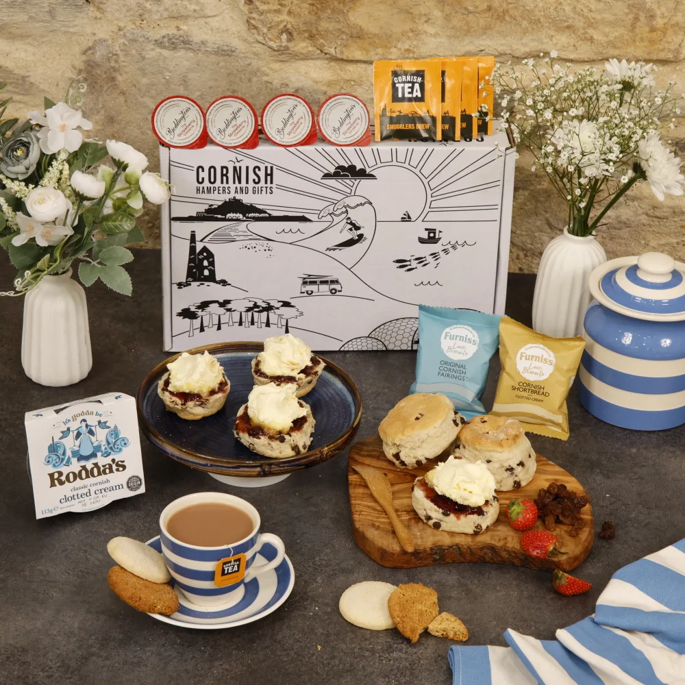 Experience the essence of Cornwall with our Cream Tea Hampers, available for delivery throughout the UK. We meticulously curate our hampers with premium products sourced directly from Cornwall, guaranteeing exceptional quality and authenticity. Ideal for any occasion, our Cornish cream tea hampers offer a delightful treat at any time.