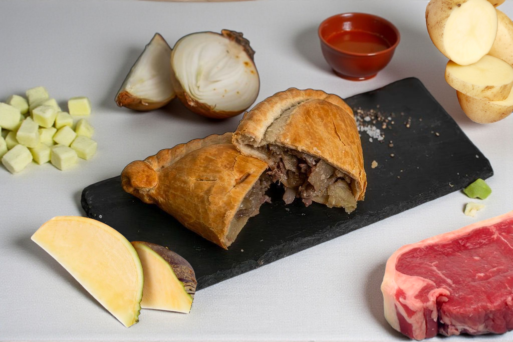 Our Cornish pasties are the real deal. Each pasty is crafted by hand using premium steak, along with sliced potatoes, onions, swede, butter, and seasoned just right.