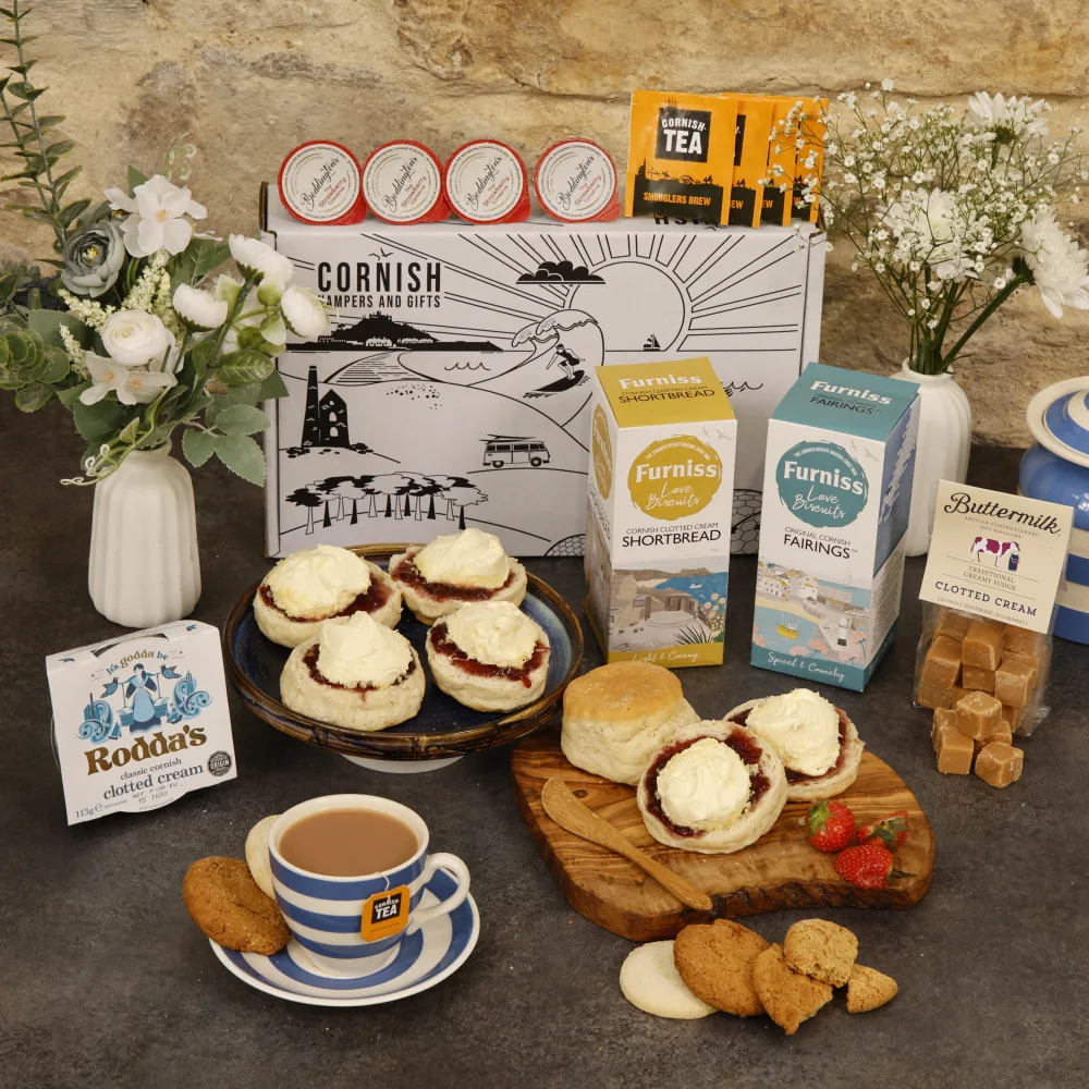 Experience the essence of Cornwall with our Cream Tea Hampers, available for delivery throughout the UK. We meticulously curate our hampers with premium products sourced directly from Cornwall, guaranteeing exceptional quality and authenticity. Ideal for any occasion, our Cornish cream tea hampers offer a delightful treat at any time.